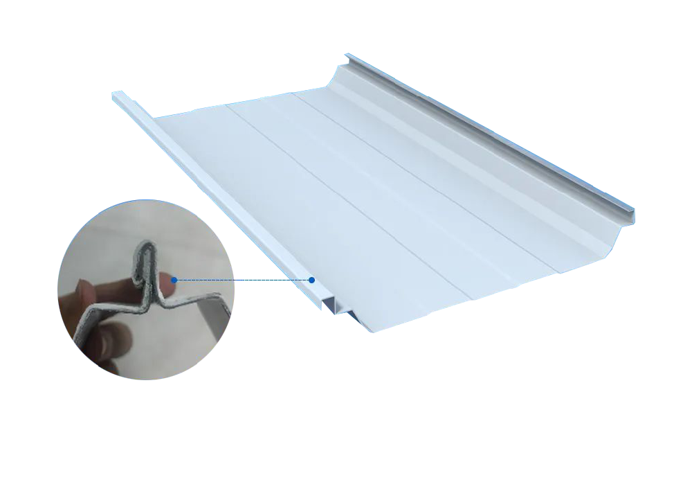 470瓦型融合瓦通過(guò)360° 直立鎖邊+TPO/PVC復(fù)合防水 + 無(wú)釘穿透 + 節(jié)點(diǎn)密封四重保障,實(shí)現(xiàn)可靠防水,核心是 “結(jié)構(gòu)鎖合 + 材料密封 + 滑動(dòng)釋放 + 節(jié)點(diǎn)強(qiáng)化”。一、核心防水原理(結(jié)構(gòu) + 材料雙保險(xiǎn))1. 360° 直立鎖邊:機(jī)械鎖合,無(wú)釘防水無(wú)穿透固定:用滑動(dòng)支座(元寶支架)暗扣固定,全程不打釘、不穿孔,從根源杜絕釘眼漏水。360° 咬合密封:相鄰板立邊經(jīng)專...