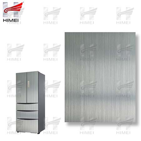 家電用覆膜鋼板,就是鋼板的基材上面覆了一層PET膜/PVC膜,然后通過覆合貼覆而成,主要應用在各類家電外殼裝飾上,例如冰箱、洗衣機、電飯煲等外殼部件。覆膜是一種物理工藝,一層膜一層鋼板經過高溫高壓壓合而成。